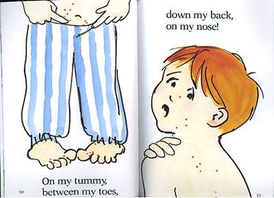 (サイズ:15.5cm x 23cm ) 体中に出てくる水ぼうそう(Chicken Pox)。かゆくてたまらない水ぼうそうをどうして治すのか。簡単な文章です。体の部分の名前がいっぱい出てきます。 (幼児/小学校低学年向け)